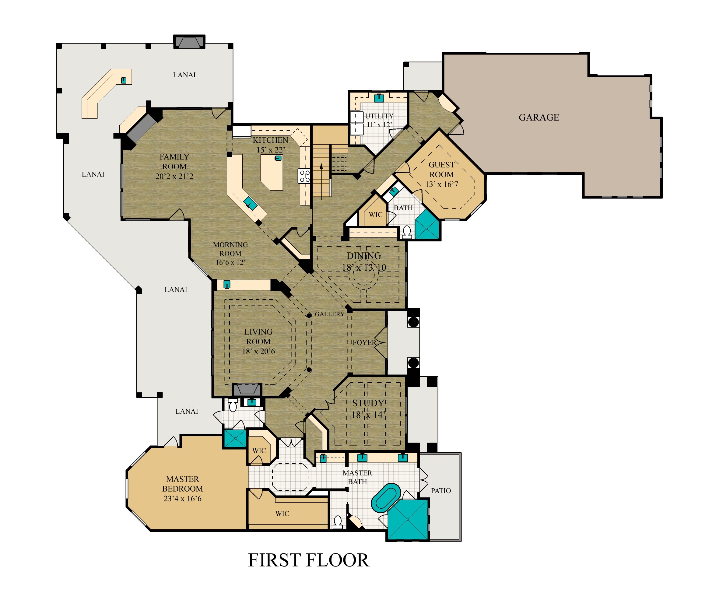 Main Floor 3550 SQFT - Garage 877 SQFT - Porches 1228 SQFT Total Area 5655 SQFT